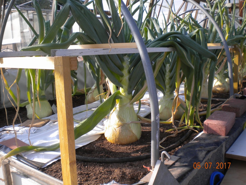 Exhibition Onions are growing strongly, better than some of my heavies which had a far earlier start. Healthy so far in this old soil raised bed.