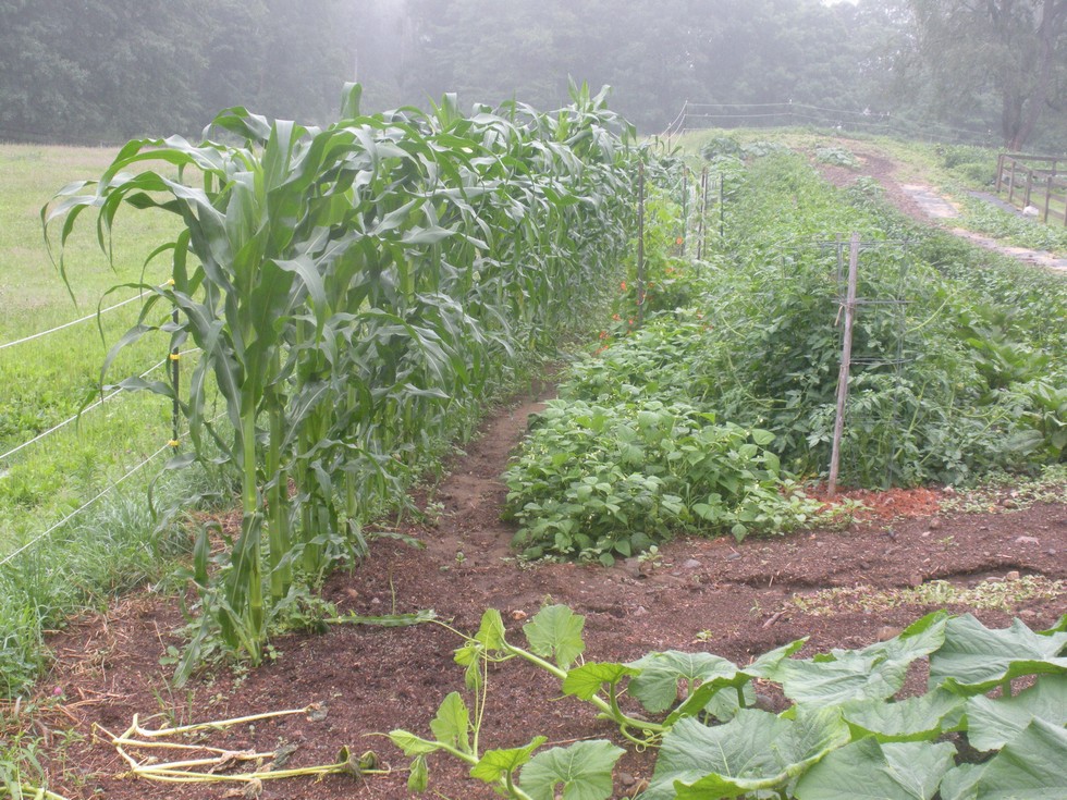 Tall corn. Thank you Doug English for the seed. He sent me a smorgasbord of seed types from Central and South America. Unfortunately the ink ran off the seed packs in the garden before I had a chance to make proper labels. So I don't know what is what. There were at least 7 different packets of seed that he sent. I wish I knew what was what. Such is life when you grow more stuff and juggle more crops than you can possibly manage in a detailed way. It has been very, very wet here and this weather is darn near perfect for growing tall corn. After last years drought I should have guessed this was coming. I should be grateful, Water is sort of important and this should help to replenish some of the ground water.