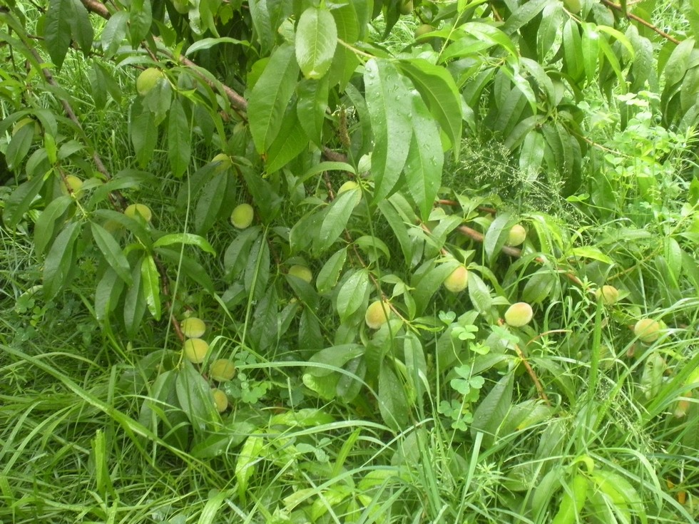 A 'Red Haven'peach touching the ground. Sorry, I don't have time to thin.