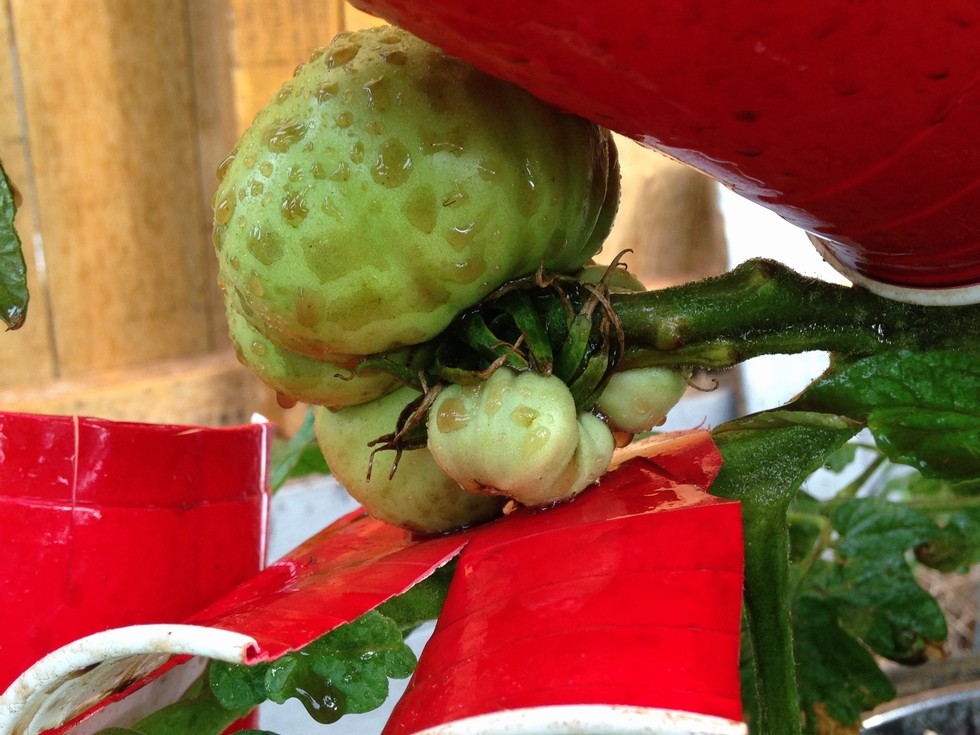 LanTerra ZacZilla Update > This fruit may be two separate maters. It is also growing on a secondary of Rusty Reds plant.... Foliar spray is concentrated Seaweed, Maple Syrup with SOD, Essential puls half teaspoon of AA Glycine in two liters of water.... The ZacZilla's are really vigorous plants. They may have a really high compensation point.