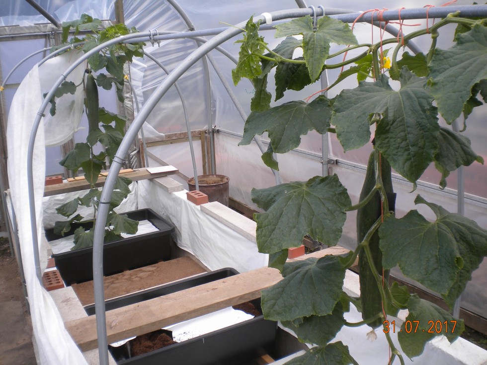 Giant Cucumbers growing in Canna 'Coco' have all set at least one and are growing fast, even though the weather has been dull and cool. Removed the middle plant today, not happy with it.