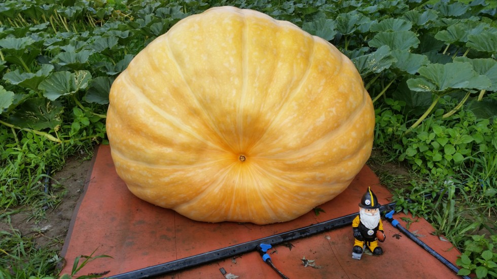 The 2066 Geddes on day 48. No problems yet. Hitting around 30 lbs still daily. A great looking pumpkin, starting to show some orange. Getting close to my 1000 lb goal on both of these. Having a great season so far. Almost there...
