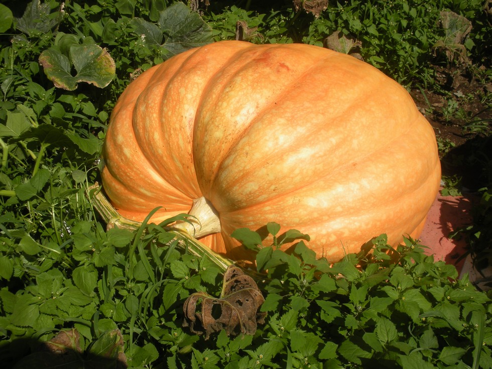 1998 Jutras stem end. This is a very wide pumpkin. Early on this pumpkin was growing like crazy. Then it stopped.