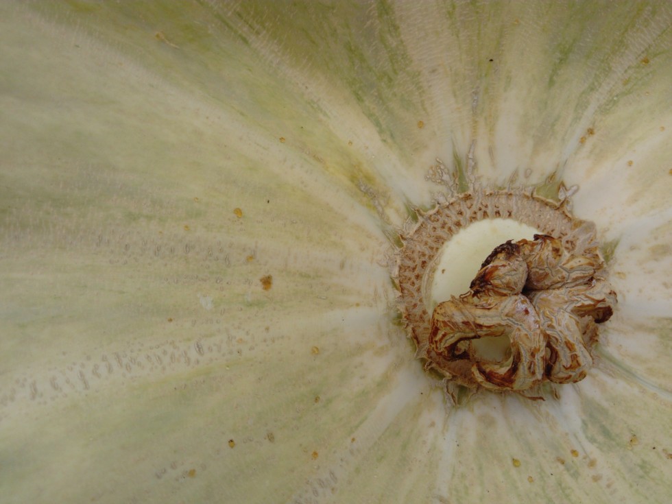 Blossom end. My theory is that I covered it over at too young an age and stopped the colour developing. Had it exposed for a couple of days and if anything it went less green. Thinking about keeping it growing for as long as possible, then uncovering and hanging some lights over it to see what happens.