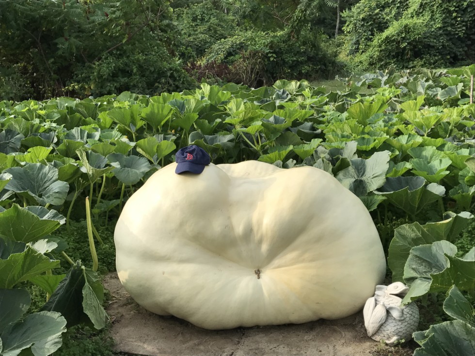 The 1961 Sperry pumpkin has an estimated weight of 1040 pounds and still growing 24 pounds per day. Ribs are just starting to form and the skin is smooth. It looks like a young pumpkin. I'm hoping I can get another 200 pounds or so out of her before the weigh-off.
