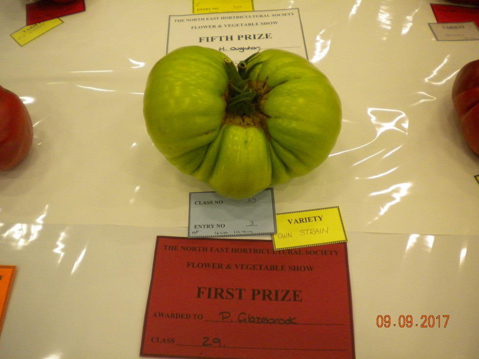 Won the heaviest tomato class with this young green fruit, hope to have better ones for later shows as all still green and growing slowly.