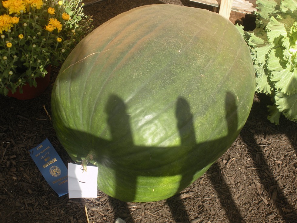 Here it is on display at the fair, covered with dust. People thought it was a pumpkin or something. To me a 100 pound Black Diamond is equal to a 175 pound 'Carolina Cross'