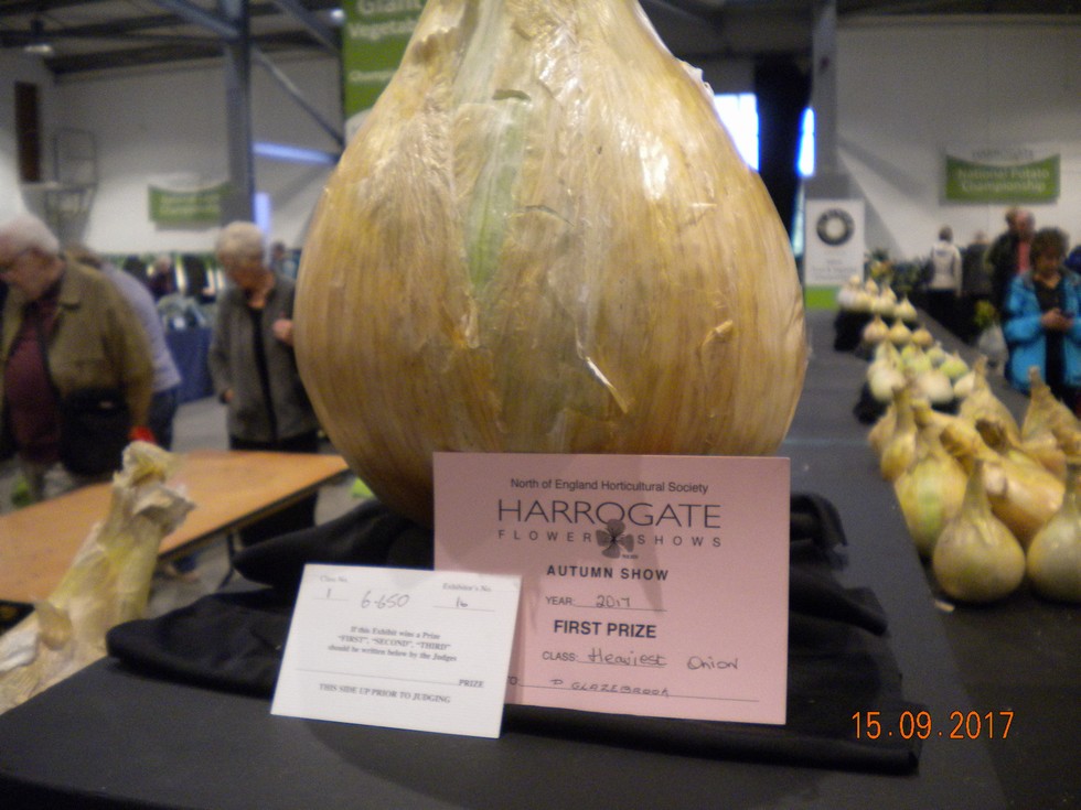 Won the heaviest Onion at Harrogate show, not as large as one shown the previous week at Blyth (16.78lbs) but this became damaged.