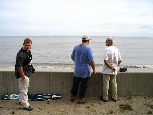 Gareth, David & Alun at Dave's seawall looking out over Long Island Sound. We saw Glenn Andrews tending his remote patch but he couldn't hear us yelling over the dying hurricane winds.