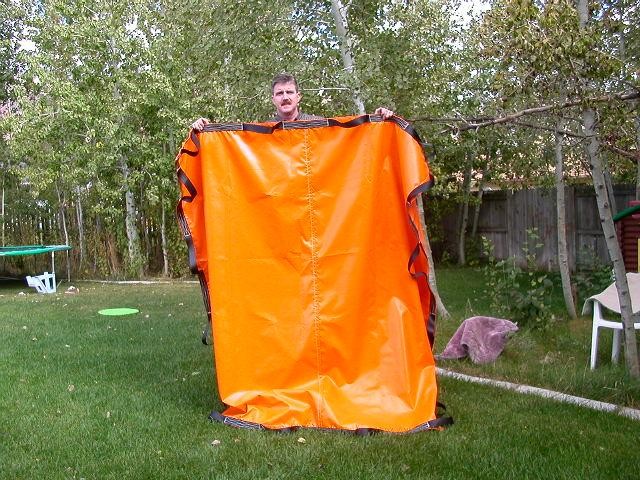 A picture of my new custom made 7x7ft lifting tarp. In case you are wondering, Yes- I'm standing on a chair.