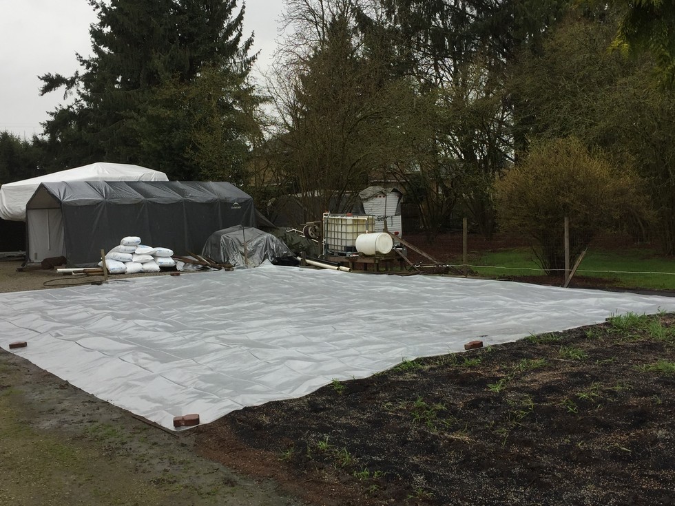 Desperate times calls for desperate measures!! The forecast was for a lot of serious rainfall in the near future so I'm trying to keep my soil drier by covering with my green house poly.