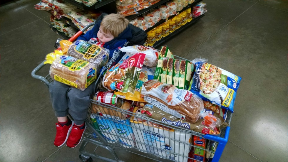 Sometimes a picture happens that may not be pumpkin, but is worthy of posting... Chicken, check, bread, check, yogurt, check, sleeping little rascal, check... wait wait who put that on the grocery list???
