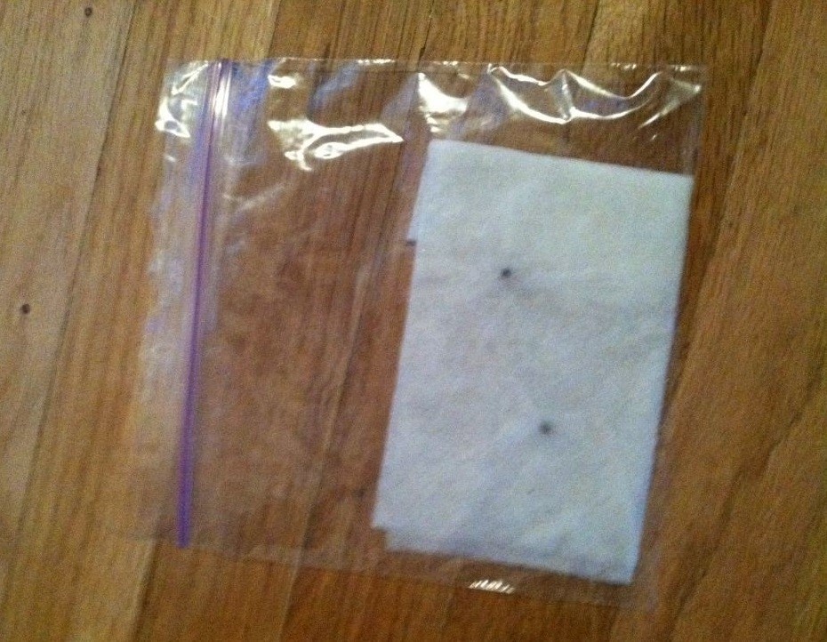 Another fantastic haily and rainy afternoon in the pumpkin patch allows me to fill in with another experiment. I snagged this picture off Google, so credit to whoever took it, but this is what I did in my second germination trial last year. I used standard paper towels (think they were Bounty) and used sterilized water to moisten the paper towel. I went with a moisture level of dunking the towel in the water and then wringing out as much as I could by squeezing it. I soaked the pumpkin seeds in a 50/50 solution of store bought hydrogen peroxide and water for 1 hour at room temperature. Then folded the towel so that there were a couple layers below and above the seed and then stuffed the whole thing in a ziplock and placed it in a temperature controlled environment at 82 degrees. Results were good, and even got a very old seed to germinate using this method (940 Mombert 98), so in a pinch, it is one to consider.