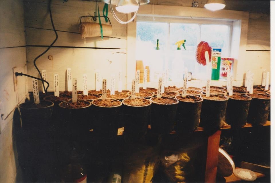 Was sorting through some old pics of days gone by and came across this gem from the 90's. Before I bought my incubator I would do this trick. I had a room that using heat lamps I could heat up to about 80 degrees. The seeds went in one gallon pots (cut in half and duct taped together for easier baby removal) after an hour soak in well water. I dunked them in powder captan fungicide after filing the edges and into the starting soil they went. We've come a long way baby...