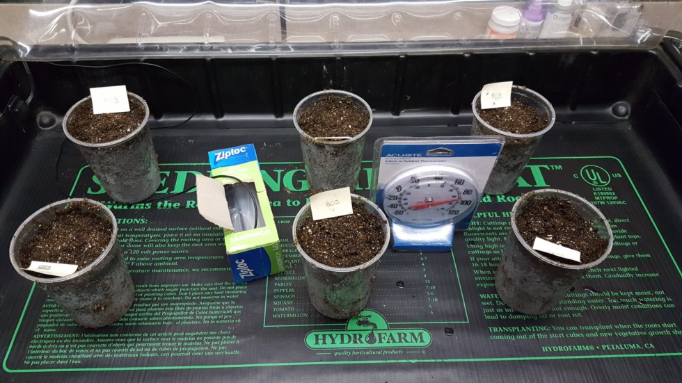 Trial number 1 is underway. For those playing along at home, prepping the giant pumpkin or squash seed for planting is fairly simple. Picture 1 shows a seed that has been filed with a fingernail file down to the layer just before the cotyledon material. This allows for more rapid moisture absorption to the embryo and also allows the embryo to free itself from the seed coat easier. Next I soak the seeds (for the trials I just use tap water) in water for one hour, using a paper towel to keep the seeds submerged. Then after that, I go ahead and put the seeds in the starting containers mentioned in the post yesterday. I put them in at a 45 degree angle flat surface up/down. These seeds went in last night at 10:00 PM and were a mix of 16 year old seeds and seeds from last year. Temp in the incubator was a nice 80 degrees.