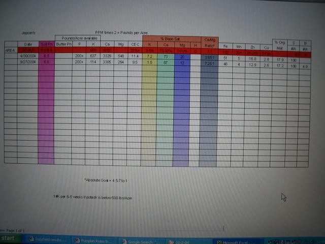 Now it's time for the soil test results. If we compare April with September, we can see that AG's are heavy Calcium & Potassium feeders. Looking back to April, we can also see that our Magnesium levels were too high as a result of using dolomitic Limestone to correct what was a pH of 4.8 back in 1995 when this patch was started. This had a negative impact on the Calcium:Magnesium ratio that I have battled for years. We're finally out of the woods.