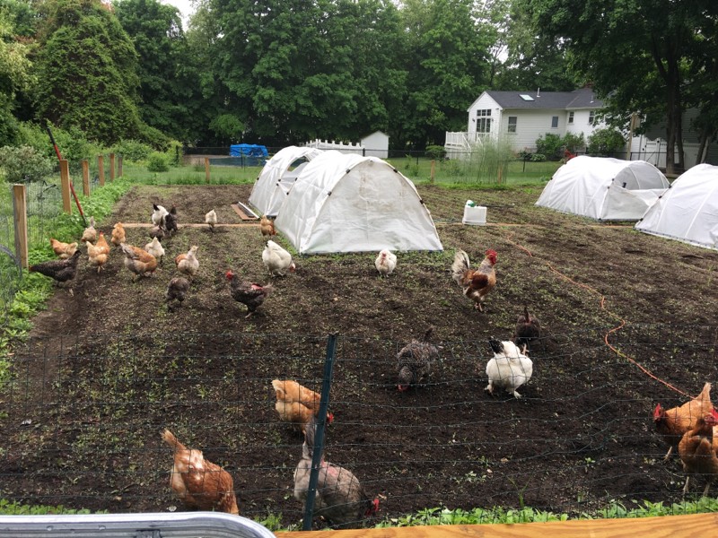 Weeding experiment and nitrogen source. 29 chickens will work for food.