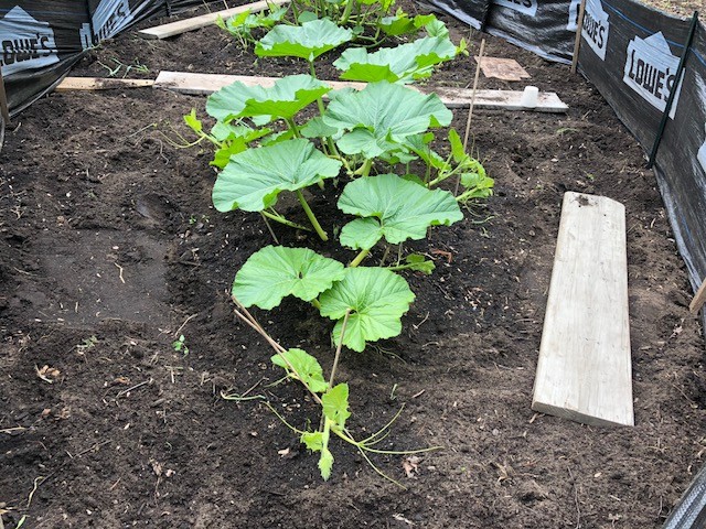 All four pumpkin plants are growing at about the same rate. All are around 7 feet or so. This is the 2363 Holland.