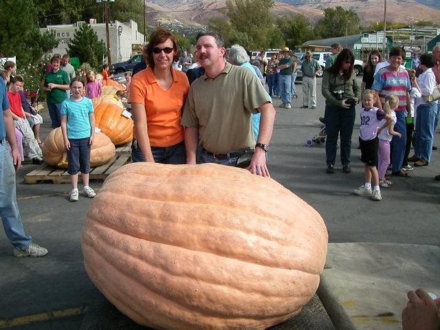 Next up was the 900 Sandvik Pumpkin. The weight is 835 lbs., a New Utah State Record! Me and my better half pose for pictures.