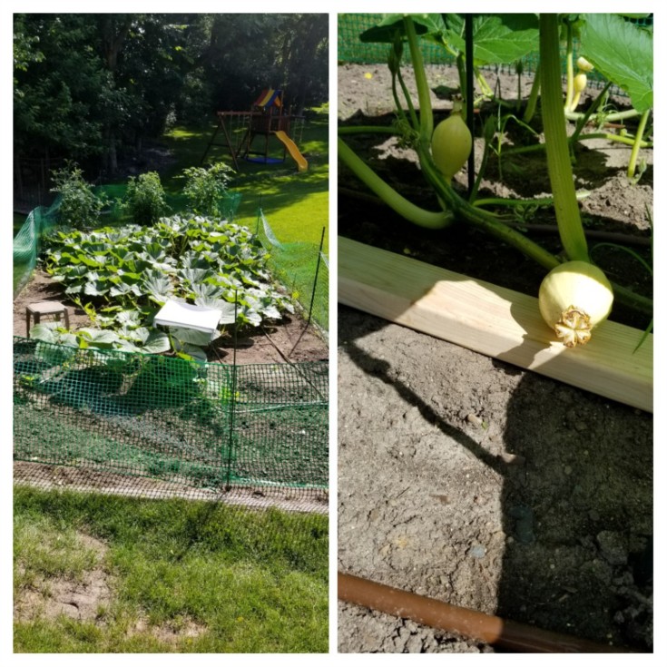 Back of the patch is nearly filled in, and I'm starting to terminate secondaries. There's space at the other end, but secondaries are a bit sparse there still. Doesn't help that I snapped one and some critter got one. Pumpkins are 4, 5, and 2 post pollination, from front to back.