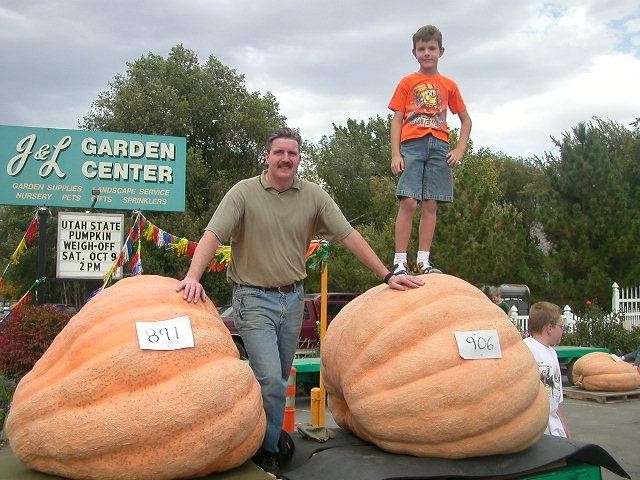 The two biggest pumpkins the 891 Tanner and 906 Tanner are put on a trailer for show.