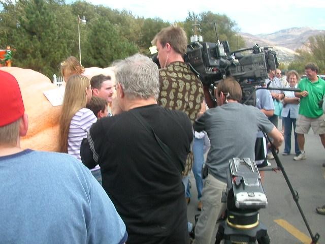 The local media crowds in an interview. I made all the local TV news shows. Each did a brief segment.