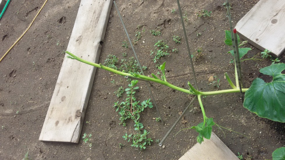 One of the gates blew down in the storm we had 2 days ago and I neglected to put it back up yesterday. So Bambi and his mother decided to do some pruning for me on the 1756 main. I will train a secondary to be the new main.