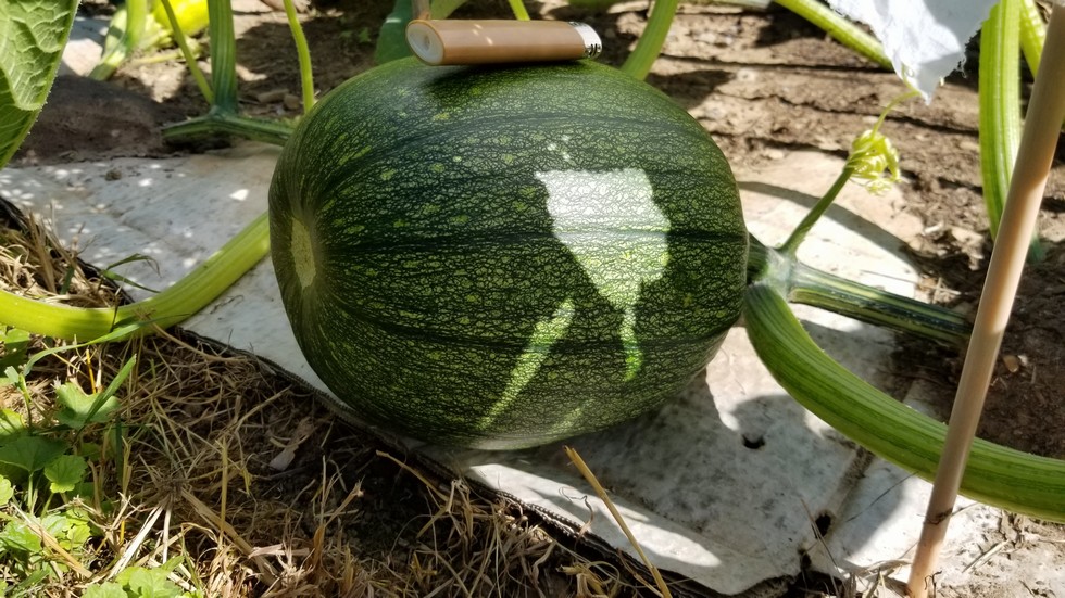 This pumpkin doesn't look like it will get much bigger but it sure has a nice shape.
