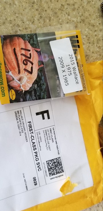 Got my seed(s) for next year! Ordered two seeds from the 1767 Wallace. Opened the packet to find one seed from the 2015 wallace 1975! I was looking at this seed before getting the 1767! I am happy with the mix up. The howdens are battling powdery mildew from the last two days of rain. Neem or copper for powdery on pumpkins?