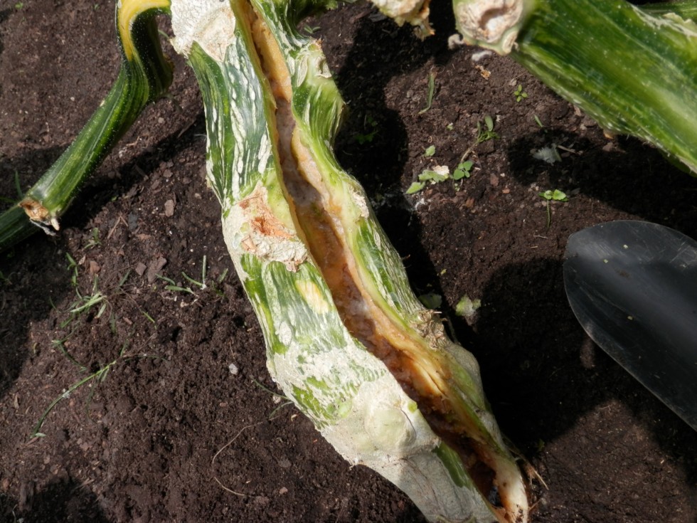 I scraped the outside mush off, and decided to cut it open. Water gushed out for a minute or so. I cut until I saw no more foam, or brown mush.