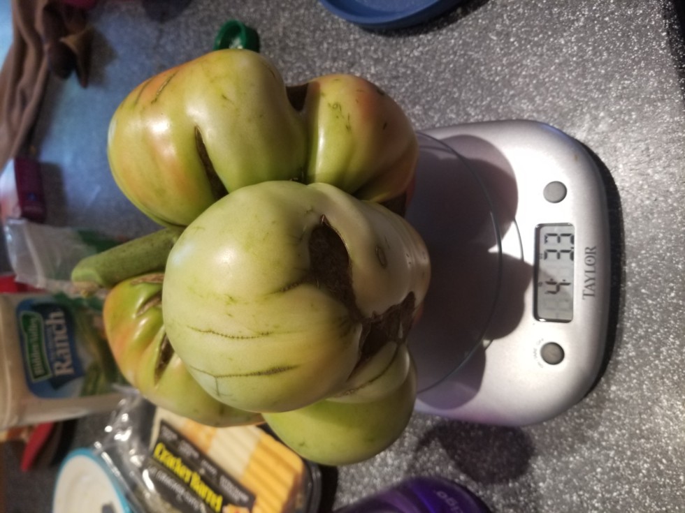 5.22 qtips were picked at 3.01 and 2.07. The menting picked the biggest. Not sure when to pick these things. If I were taping each day, the numbers would tell. Never had to cut a tomato stem so thick. Probably have another 4lb one in a week.
