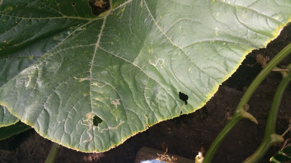 Oops. Not sure if the picture made it. I'll try again. This is caterpillar damage on a pumpkin leaf.