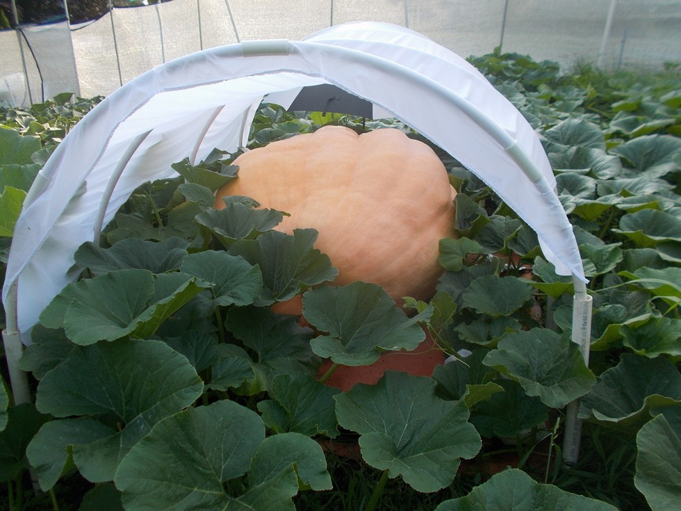 It is a challenge to get a good picture of this pumpkin. What I can tell you is that it is a very long and low pumpkin that seems to be gaining more orange color each day. Visually, it is not all that impressive because it is not very high, but it seems to keep adding length. This pumpkin adds some variety to the patch and as long as it keeps adding pounds it does not matter where the weight is to me.