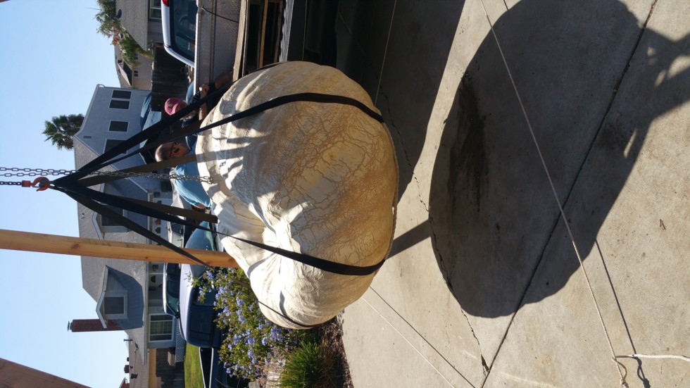 We have lift off! Now hurry up and get that dang truck under the pumpkin before it falls!