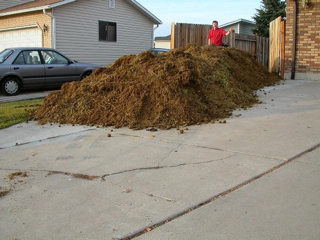 Just as I was starting to take the leaves back into the patch, my manure supplier called me and asked if I wanted a load. I had called him two weeks ago and asked for some. So when it rains it pours all the leaves and 18 yards of horse manure too!