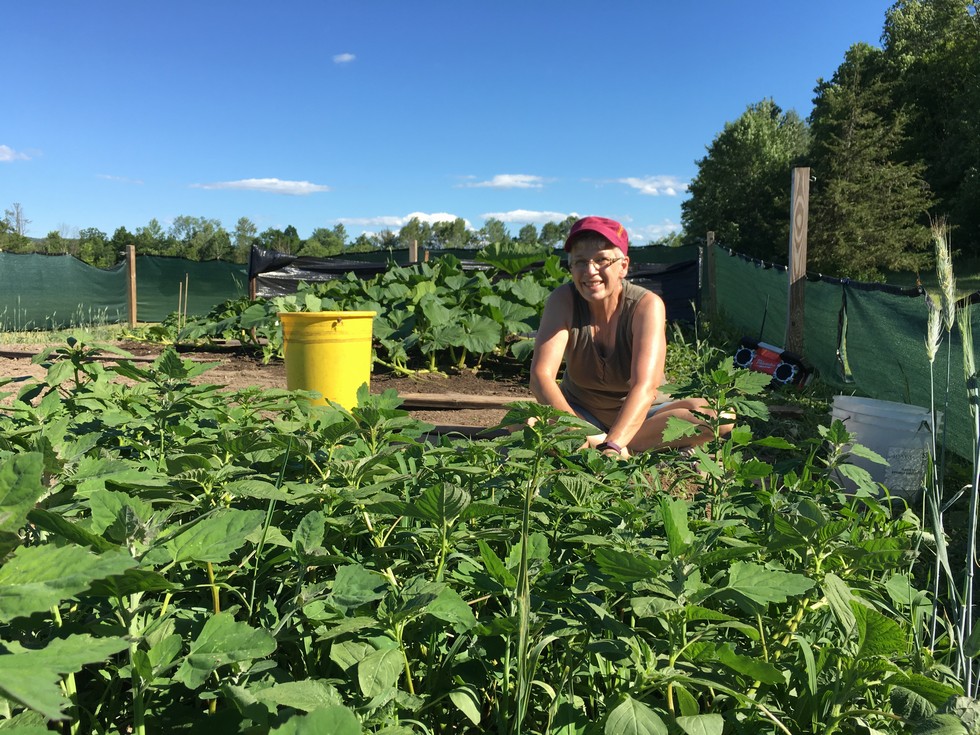 Pulling more weeds in the 1733 Wallace patch. You can see the Wallace plant in the background, vining out nicely. One pollination complete on this plant, but I'm not happy with the position on the vine.
