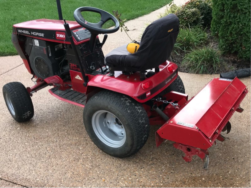 I finally got the tiller for my lawn tractor hooked up. I�ve had this for a few years but never attached it. I had been using a walk behind tiller which is on its last legs. I can�t wait to till the patch with this in the Spring.