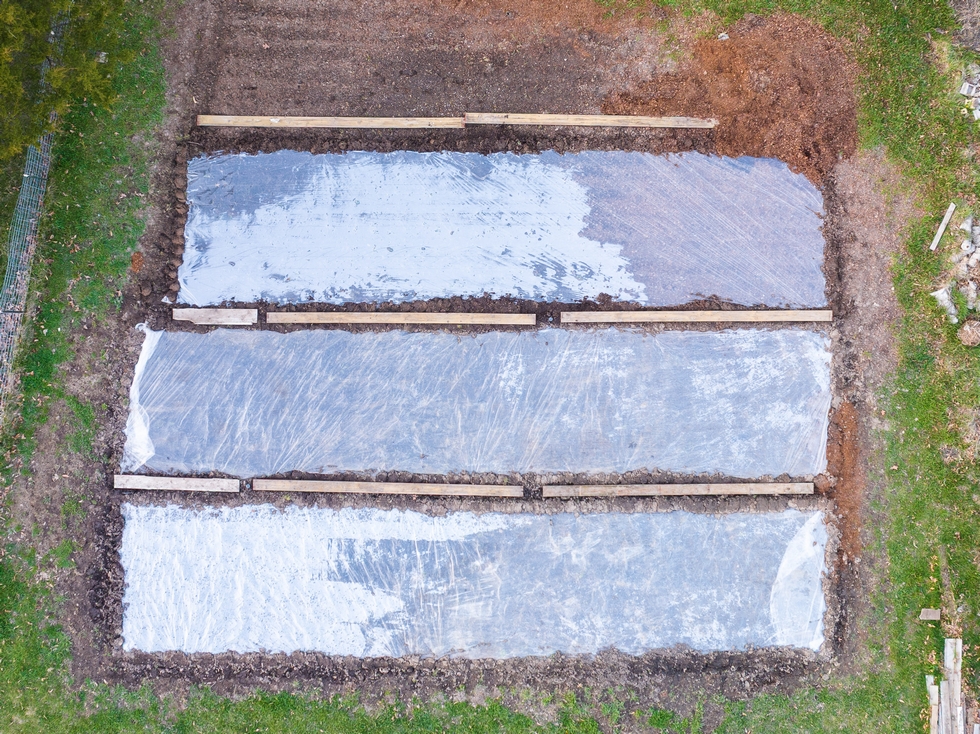 2024. The next step to prepare for the patch for 2025 was solarization. This is a non-chemical way to (hopefully) sterilize the soil using trapped solar heat. Clear plastic covered the entire garden through the summer months to trap heat and try to kill off any pathogens. Mid-summer the plastic sheeting was removed, and the soil was tilled. Then new plastic sheeting was reinstalled shifted over a few feet to cover previously exposed areas.