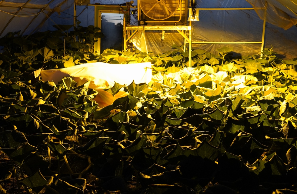 With the reduced daylength the goal is to simulate the late June summer solstice which is the longest day of the year. This is also when the pumpkin plants are growing aggressively, and the pumpkin is starting to ramp up in growth as well. Reduced light can cause plant and pumpkin ripening (senescence) which can lead to reduced gains.