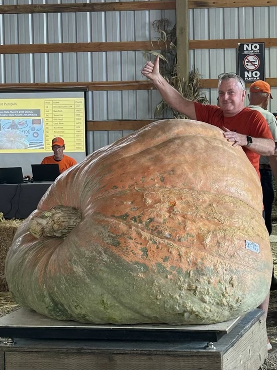 My beautifully ugly pumpkin, "Cracker" was weighed today at Bauman's Farm. It weighed in at 1699.5 pounds and placed fourth. That's not bad for a pumpkin I basically ignored since August 1st so I could give my bigger ones more attention. It was a nice day at the PGVG's first weigh off of the season. Congrats to Jon & Annie Sestak on their win!
