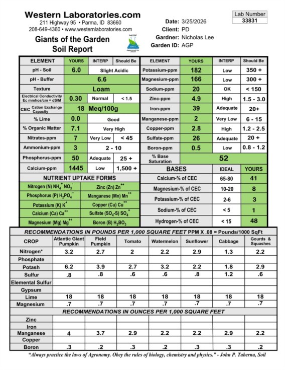 Strange Soil Report: - PH has dropped from 6.5 to 6.0. It may have just been the samples I took but that's strange because I've put down a lot of lime over the past 2 years. Lime is cheap so that's not the end of the world. - Soil texture is now loam and my CEC has gone from 11 to18 which I love to see. - OM has stayed the same. I was going to add a few yards of leaf compost but seeing as my CEC has gone up and my PH has gone down, I don't really feel the need to do this given my history of soil disease. - Phosphorus has doubled even though I haven't added anything heavy in P and I fertilize with low P blends. That's just a mystery. - Calcium has increased by about 40% which is awesome. Most likely due to last years 600+lbs of gypsum. - Potassium Has increased by about 40% as well which is good. I'm still going to have to add some 0-0-50 or langbeinite. - Magnesium has dropped a negligible amount. I'm not sure how to add magnesium that will "stick around". I feel like Epsom salts will just wash away after a few rainy days. - Manganese has slightly dropped. Once again I'm not sure how to get manganese sulfate to stick around. - Boron has stayed the same. I'm going to add amino acid chelated boron this year instead of borax since I have a feeling it will stay in the soil longer. Time to play around in the Langley calculator.