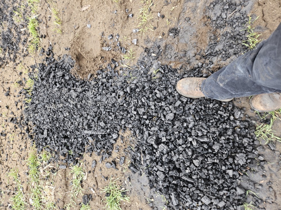 1 of the things im trying for the first time in 2026: charcoal. As a byproduct of syrup making, its completely free and barely any extra work. Now, its not technically "biochar" as it lacks the biological innoculation, however it should still have the same benefits of increasing cec, water retention, and microbial growth possibility. I expect to get ~10 cubic feet from my final 2 boils of the year. Maybe next year ill do it every boil and heavily ammend all my patches with it
