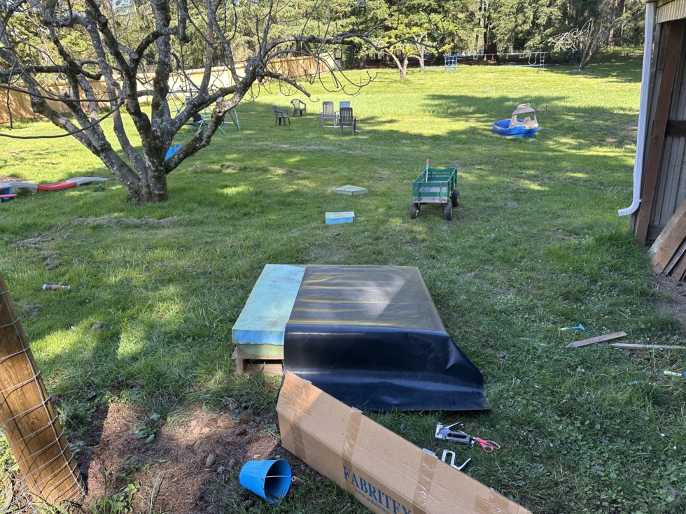 Thanks Annie for this material! It's working great on this pallet to cover the padding. Good thing I waited to do this now! LOL. Perfect thing to do while my assistants have their union mandated break. Next up is getting amendments into the patch.