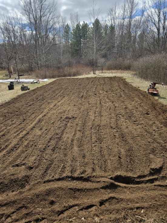 1 patch done! The new 30x65 patch is amended and rototilled. ~650 pounds of calcium sulphate, 85 lbs of 18-18-19, 2.75 pounds copper sulphate. My borax and manganese sulphate will be added to soil drenches through season to avoid leaching. Other than that, the soil should be top notch.
