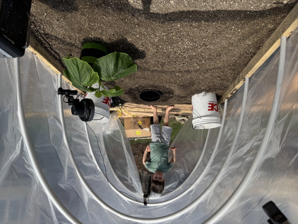 Preparing the hoop house with a space heater and two buckets with 90 degree water with heaters on them. In combination with the soil heating cables hopefully that does the trick over the next several days.
