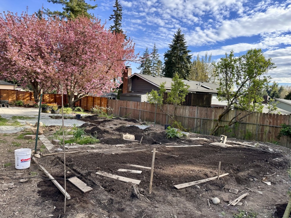 Beautiful spring day today! These cherry blossoms are the best part of my yard. My small patch is about ready for a post-amendment soil test. I'm working on a MakerPipe/conduit greenhouse, but in the meantime I've been keeping the patch covered with plastic anytime it's not a nice sunny day to hold some heat.