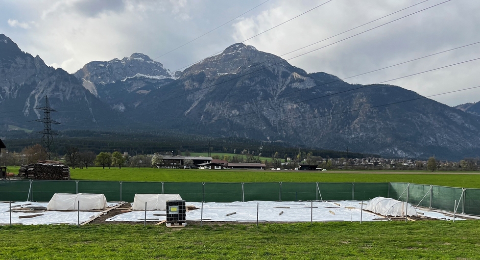 The patch for this year- going for three plant- two hoop houses have heating cables and the third one has a heater in it. The Tarpaulin is a leftover from a "silo-Tarpaulin-> it is meant to be a herb killer