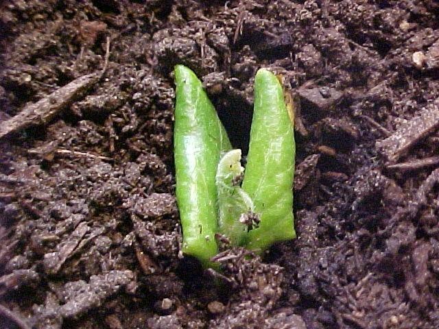 And here's how the 810 Dill looked when it emerged. You can see how deformed everythign is. The seedcorn maggots actually eat the seed as it germinated, resulting in seriously deformed and stunted seedlings. This one took so long to emerge, it already had two seriously stunted true leaves.