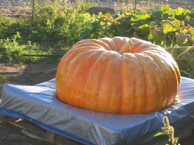 And here's my "Golden Globe" entry....an 810 Dill x self.I turned it onto it's blossom end when it was very young to keep the traditional shape most people think of when they think of a pumpkin. Estimated at just over 200 pounds and grown on a tiny plant that endured stunting due to seedcorn maggots and multiple deer attacks.
