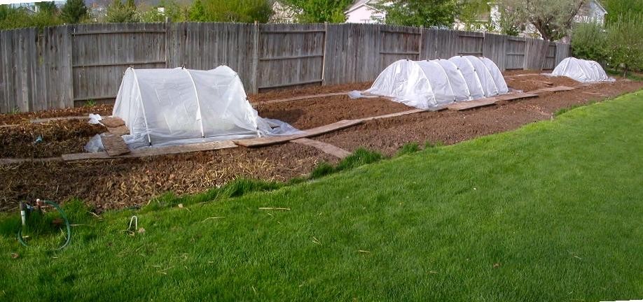 Finally got the hoops houses up. Each on is about 7x7 ft. the four on the right are in two back to back groups. The plants will go out in the next couple of days.